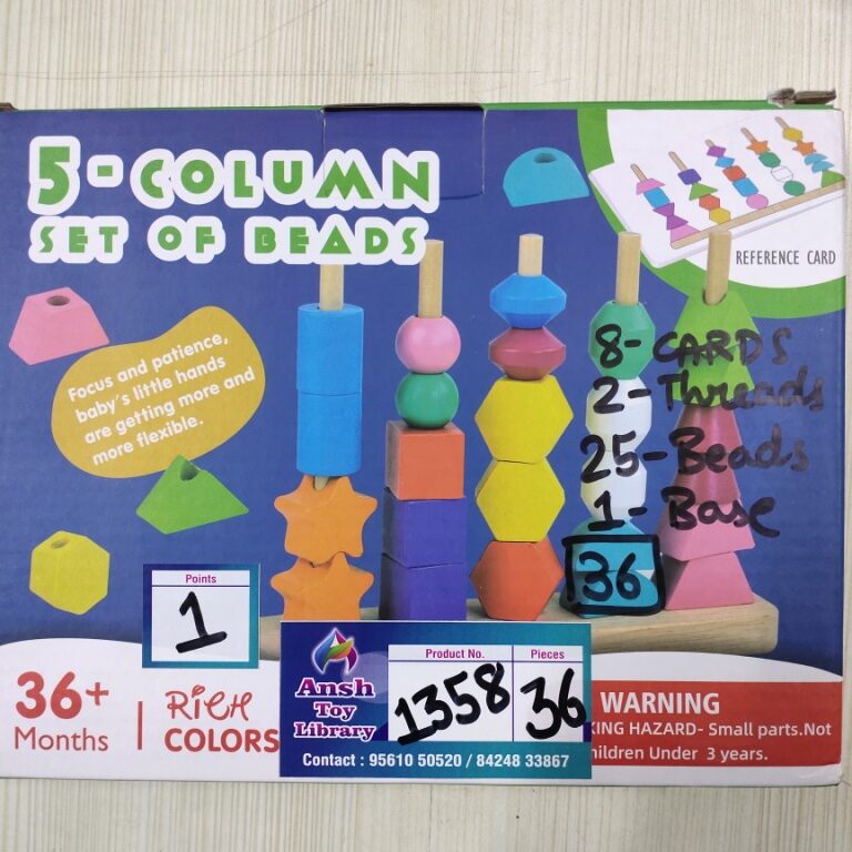 5 COLUMN SET OF BEADS GAME AGE: 3 YEARS+ POINTS: 1 See also different: 3 IN 1 STACKER (SMALL) No. 1684 CURIOUS CUB LEVEL 14 No. 1048 KNOBBED CYLINDER No. 276 << return to products