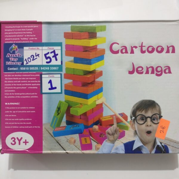 CARTOON JENGA AGE: 3 YEARS+ POINTS: 1 See also different: FARMYARD BINGO NO. 2039 BIKE 2 SILVER NO. 1770 DOUBLE TROUBLE GAME No. 588 << return to products