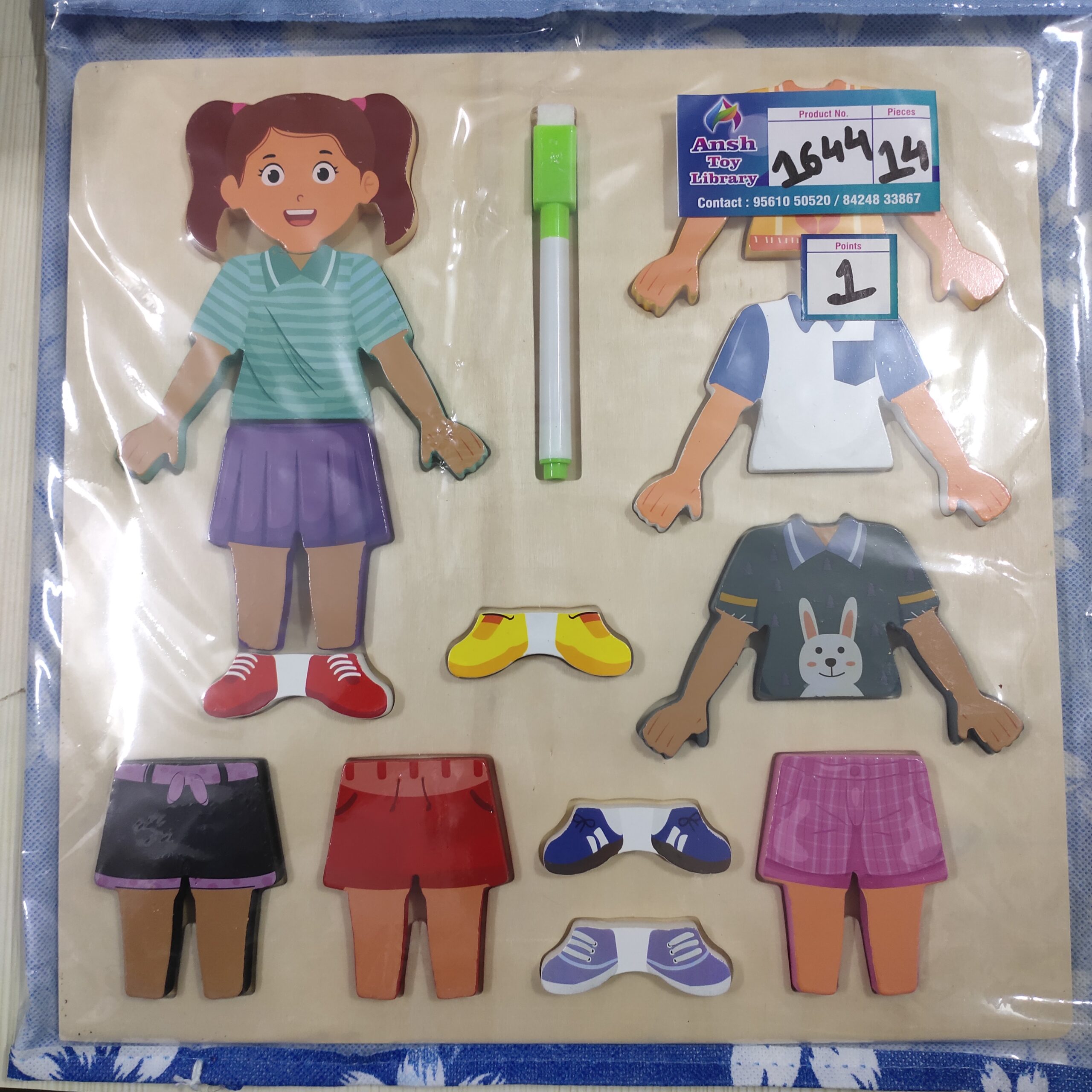 CLOTHES MIX & MATCH PUZZLE 1 AGE: 2 YEARS+ POINTS: 1 See also different: COMBI CUBES No. 1409 POLAR EXPRESS WOODEN PUZZLE No. 833 TRANSPORT PUZZLE No. 030 << return to products