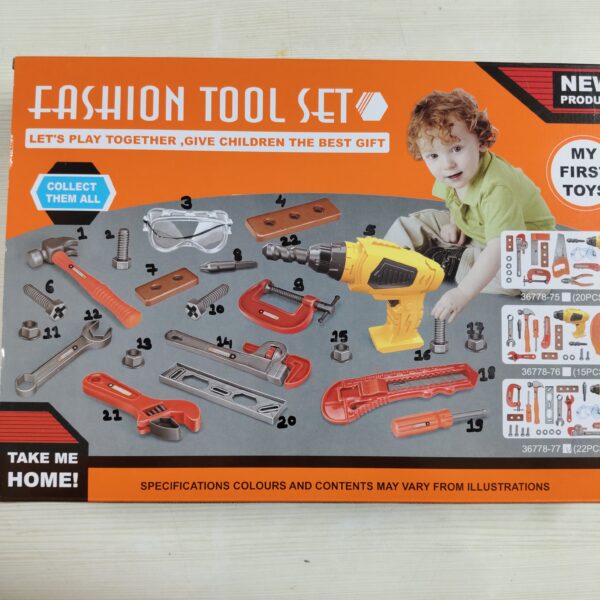 FASHION TOOLS SET NO. 2053 AGE: 2 YEARS+ POINTS: 1 See also different: DREAM HOME (DOLL HOUSE) NO. 2061 DENTIST SET GREEN No. 1693 VEGETABLES SET (PLASTIC) No. 654 << return to products