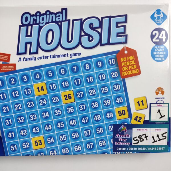 HOUSIE 24 CARDS AGE: 8+ POINTS: 1 See also different: UNO SPIN GAME No. 1360 ZEPHYR DOG & THE BONE GAME No. 1407 KIDS ON STAGE BOARD GAME No. 520 << return to products