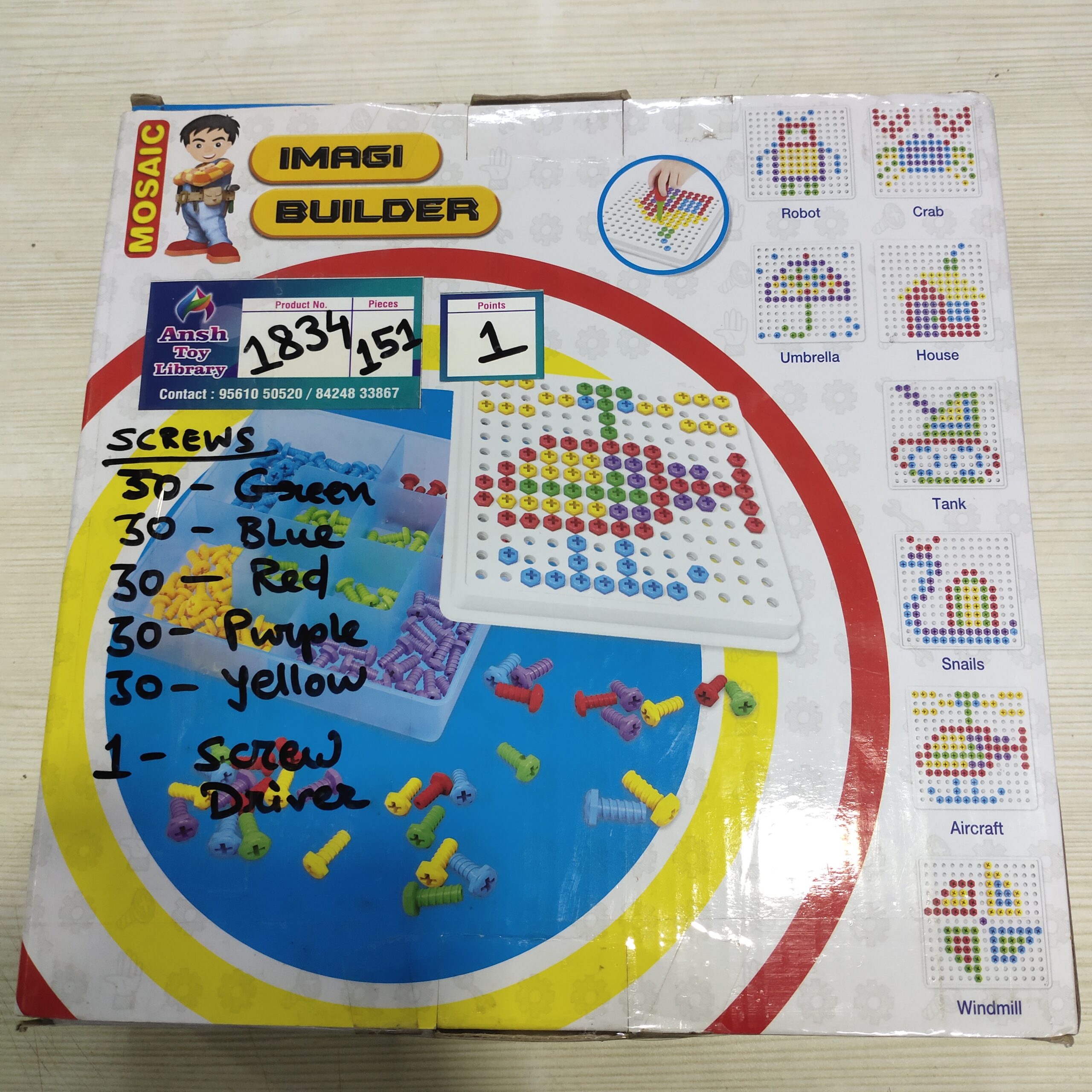 IMAGI BUILDER (ONLY SCREW) 2 NO. 1834 AGE: 4 YEARS+ POINTS: 1 See also different: GISCO 6 FEET PARACHUTE NO. 2095 RED RACKET 2 NO. 1918 BLOCK CUP STACKER No. 1666 << return to products