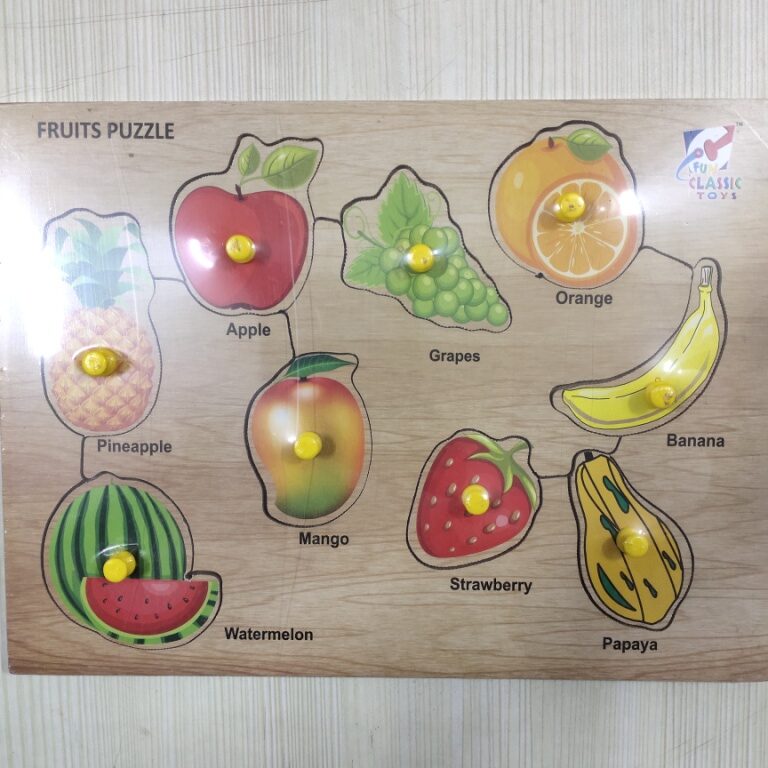 KNOB PUZZLE FRUITS AGE: 1 YEARS+ POINTS: 1/2 See also different: ROCKET (1-10 pcs) WOODEN No. 1499 4 PC PUZZLE (BIRDS) No. 1115 DIGITAL PUZZLE NUMBERS No. 674 << return to products