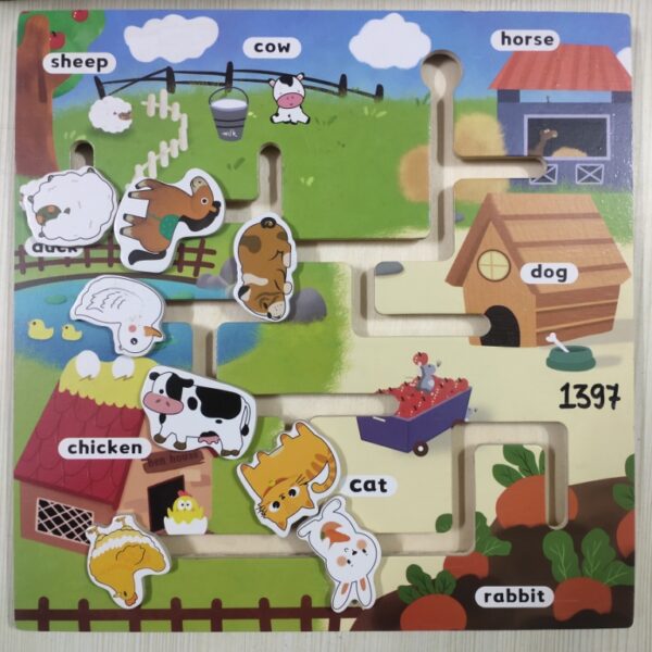 LOGIC PUZZLE WOODEN – FARM AGE: 2 YEARS+ POINTS: 1 See also different: RABBIT (1-10 pcs) WOODEN No. 1498 4 IN 1 JIGSAW BARBIE No. 568 ALPHABETS (JIGSAW) No. 099 << return to products