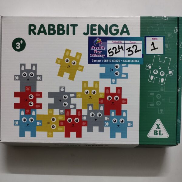 RABBIT JENGA WOODEN AGE: 3 YEARS+ POINTS: 1 See also different: 3 IN 1 STACKER (SMALL) No. 1684 CURIOUS CUB LEVEL 11 No. 1119 RAINBOW PEG BLOCKS No. 1185 << return to products