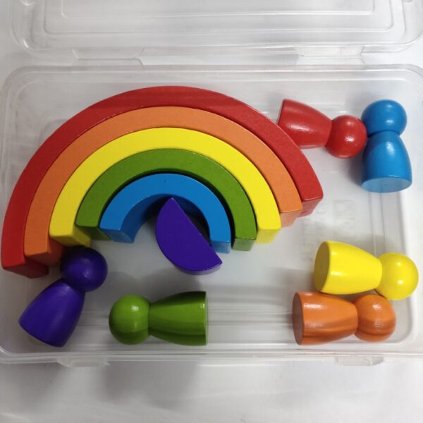 RAINBOW + PEGS WOODEN OPEN ENDED TOY AGE: 1 YEAR+ POINTS: 1 See also different: BEADS BIG (SPIRAL) NO. 1865 WOODEN BALANCE STONES 2 No. 1525 HERCULES MAN BALANCE No. 1025 << return to products