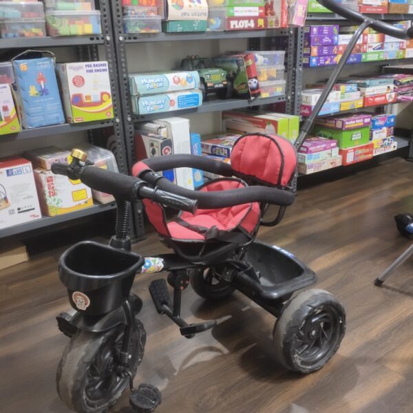 RED TRICYCLE WITH HANDLE AGE: 1 YEARS+ POINTS: 2 See also different: FOLDING STROLLER BLUE NO. 1963 SKY 455 RIDEON No. 1720 BLUE JEEP BATTERY OPERATED << return to products