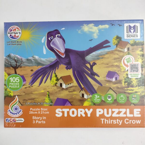 STORY PUZZLE THIRSTY CROW 3 X 35 PIECES. AGE: 3 YEARS+ POINTS: 1 See also different: FRANK – SPACE ADVENTURE (BIG) PUZZLE NO. 1810 STICK PUZZLE (STRIP PUZZLE) No. 1201 FARM PUZZLE A-Z WOODEN No. 816 << return to products