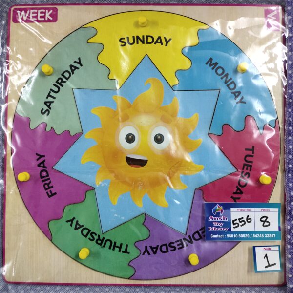 WEEKDAY KNOB PUZZLE AGE: 2 YEARS+ POINTS: 1/2 See also different: AVENGERS WOODEN 35 No. 928 RAINBOW WOODEN PUZZLE No. 738 EDUEDGE EQUIPMENT MATERIAL MATCHING No. 769 << return to products