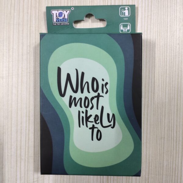 WHO IS MOST LIKELY TO (CARD GAME) AGE: 14 YEARS+ POINTS: 1 See also different: FIRE FIGHTER DRESS (WITH ITEMS) NO. 1905 3 PIECE SPINNERS No. 1573 FANCY CUBE No. 1289 << return to products