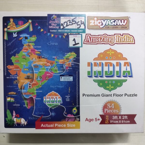 ZIGYASAW INDIA GIANT PUZZLE AGE: 3 YEARS+ POINTS: 1 See also different: SHAPE PUZZLE (3 YR) DIFFICULT) No. 1173 KNOB PUZZLE VEGETABLES No. 1177 ANIMALS 2 KNOB PUZZLE No. 680 << return to products